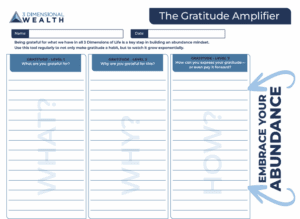 During our time together, we take time to fill out one of the 3 Dimensional Wealth tools: The Gratitude Amplifier.