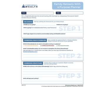 Vacations can be more than just fun — they can help shape your family’s growth. Plan unforgettable getaways that are both exciting AND meaningful by interspersing 3 Dimensional Wealth moments into your itinerary.